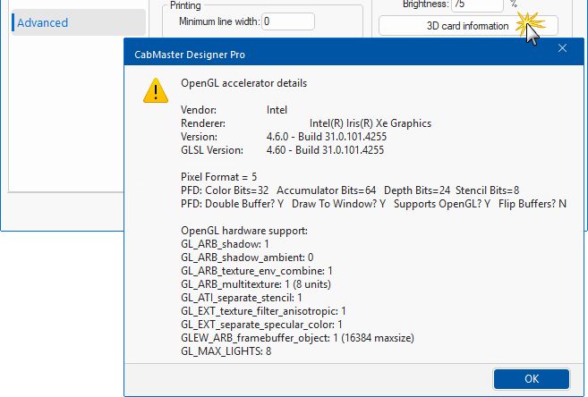 Click on this button to get information concerning your currently installed 3D Hardware Accelerator.