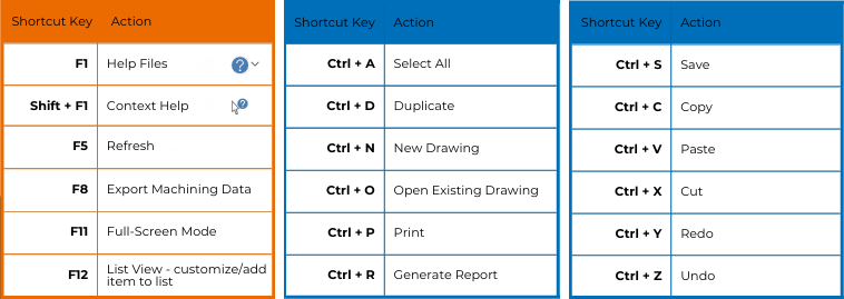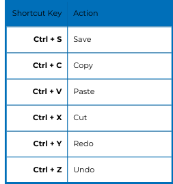 click on the keyboard shortcut on the following chart to quickly locate more detailed information on the most used keyboard shortcuts.