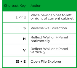- With Shift key : These keys rotate the cabinet by 90° intervals, or without shift, by 15° intervals.