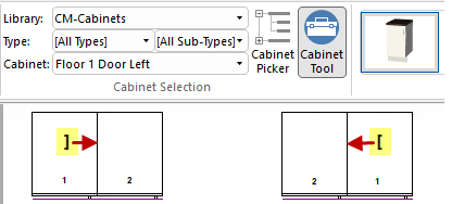 To look at properties before placement, use the Cabinet Tool command. Background will display in blue.