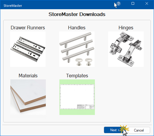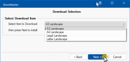 After clicking on the StoreMaster command button, you will also see available tables for download. Select the type of download required.