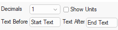 2 decimal places, show units | Shows the current units being added to the label with 2 decimal places. | |