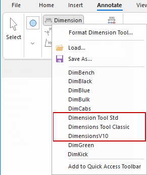 Watch a Minute with Mike which discusses the use of both the v12.1 Dimensions Tool Classic and the legacy DimensionsV10 options in the tutorial on dimensions.