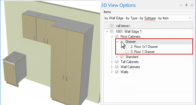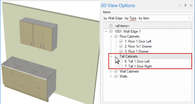 Example of cabinets turned on/off in 3D View