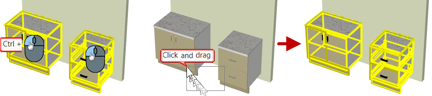 - select one cabinet/item by left clicking on them individually;
