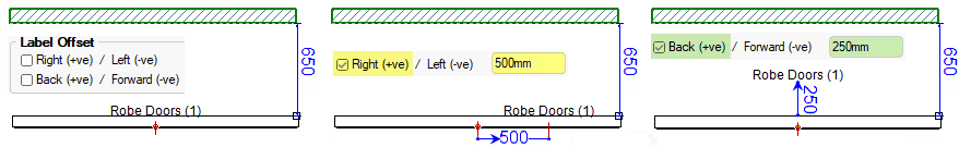 Label Offset moves the cabinet label right/left or back/forward dependent on whether the measurement is positive or negative, as shown.