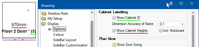 Display Cabinet Height will only work if the corresponding option on the Display > Options page