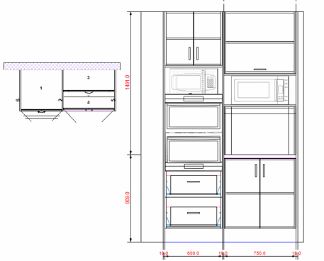 - Wall [1001] Edge 1 - is an elevation along the top wall and provides details of all cabinets on it.