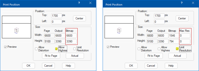 Limit Resolution: If enabled, extra Max Res edit boxes are provided as shown below right.