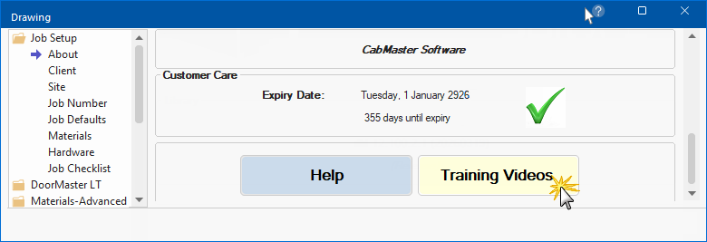 Easy access to step by step lessons are available from the Job Setup > About page of the Drawing Properties.