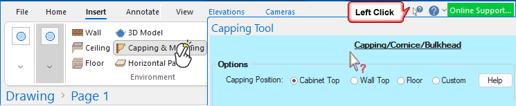 Drawing tools are just like a staging area where items are prepared for addition to a drawing and can be customised before or after placement in the same ways as cabinets. Most tools allow you to create/save customised tools, which can be selected/loaded when required.