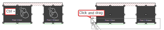 - or by clicking on a blank area of the drawing near items for selection and dragging the mouse to form a box.