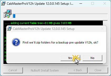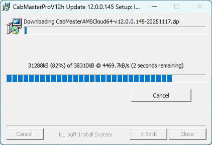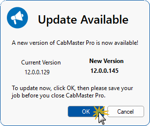 You will be notified that the update has been installed. When you later open CabMaster, click on the