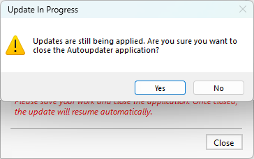 Do NOT press the Close button unless you want to end the AutoUpdater.