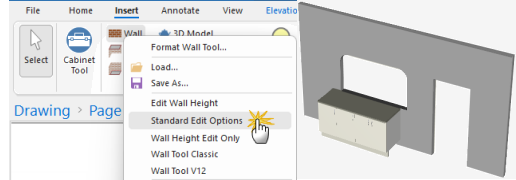In this tutorial we will using the Standard Edit Options Wall Tool, shown right, to create a curved hole in the wall to be used as a servery.